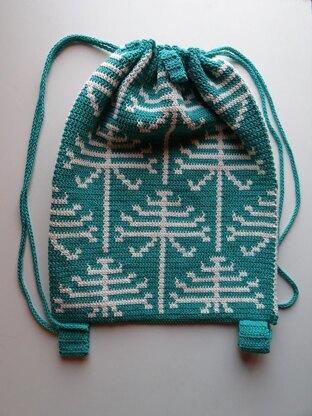 This pattern contains written instructions, photos and charts to make a drawstring backpack.