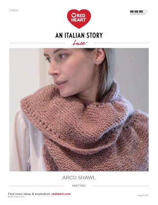 Arco Shawl in Red Heart Luce - LM6041 - Downloadable PDF ist eine Anleitung zum Knitting von Italian Collection Design Team, die als Herunterladbares PDF in den folgenden Sprachen verfügbar ist: Englisch. Besonders geeignet ist sie für alle, deren Können bei Fortgeschritten einzustufen ist. Probiere sie noch heute aus und kreiere dein nächstes Meisterwerk!