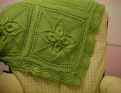 Each counterpane square for this heirloom baby blanket is made in the round from the center out. Instructions for the counterpane square are both charted and written out in text. Create a larger blanket (48" by 60") by knitting 20 squares and omitting the border.