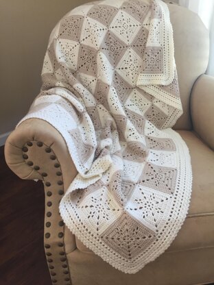 This pattern was designed for my niece as a wedding gift. I wanted a timeless yet simple square that could be used for a throw, a baby blanket, or even as a table runner. It came out quite elegant. This will be your go to pattern for a wedding gift or baby shower.