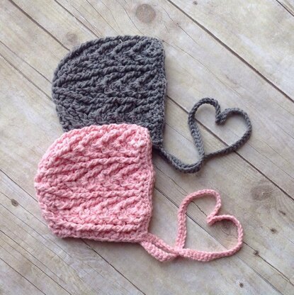 This is a PDF crochet pattern for a uniquely-textured baby bonnet in 5 sizes, from newborn to child. This is not a beginner pattern, you should be experienced with front and back post stitches.