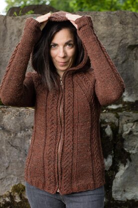 Artichoke French Hoodie is a cardigan version of my Artichoke French pullover sweater. Artichoke French is worked from the bottom up, flat! It has compound raglan shaping at the yoke to ensure a beautiful fit. The Artichoke French stitch travels up the sleeves and body and decreases into the yoke. You can knit your sweater with or without ninja cuffs. Finally, if you have never installed a zipper before, the pattern will help with that!