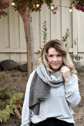 This shawl has a lovely Fall/Winter cozy mood with each color block melting into the next color block. With it’s relaxing repetition of stitches, a simple lace detailing gives it a delicate texture. It’s long length gives it many wearable/wrap options.