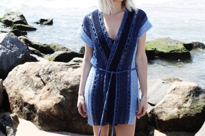 This ombré beach robe that fades like the tides of the sea is the perfect compliment to your beach attire this summer. The colors get deeper toward the center of the body just like the ocean gets darker as you get farther from the shore, and the vertical fade has a lovely slimming effect.