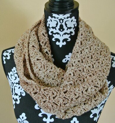 This beautiful double wrap infinity scarf is crocheted using the Crow's Foot Lattice Stitch, creating a distinctive openwork lace pattern with a moderate drape. Madelintetosh Tosh DK gives the scarf enough warmth to be a perfect accessory on a cool spring or fall day. The stitch pattern is easy to acquire, and the scarf crochets up in a flash. You'll be wearing it in no time or giving it as a gift to that special person!