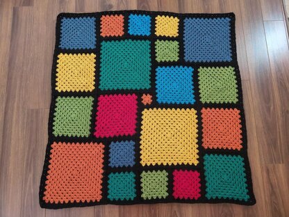 Newborn total yardage: 875 yards Squares: 600 yards Join: 275 yards Finished size is approximately 3.7 times bigger than your 7 round square. Sample measures 29” square.