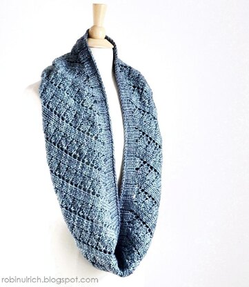 Suitable for beginning lace knitters, the Ascend cowl is much easier to knit than it's graceful appearance belies. A ribbing border flows easily into an adaptation of a traditional Estonian stitch that spirals up around the cowl naturally using only the simplest of lace elements.