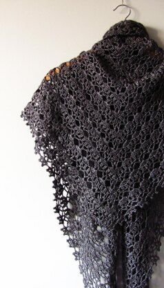 Astra is a triangular shawl worked top-down in an original flower stitch and decorated with picot border.