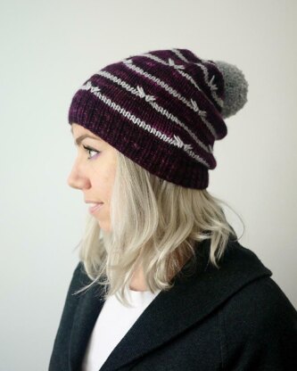 In ancient Greek, Astrea means “star-maiden.” This hat is unisex, not just for maidens, but the two-color cables remind me of stars. Astrea comes in many sizes to fit newborns to large adults. This hat is worked from the bottom up in the round. Both written and charted instructions are included.
