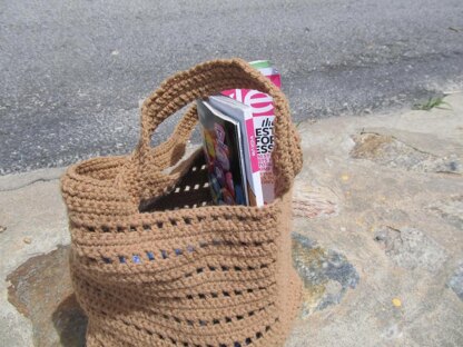 This is a bag written for 3 sizes, that can be used as a purse when lined (lining instructions not included), a market bag or a tote bag. It's crocheted from the bottom up, the base worked in rows and the body of the bag worked in rounds and turned after each round is completed. Worked in Red Heart Super Saver, this bag is not only cheap to make, but very durable and of course machine washable!