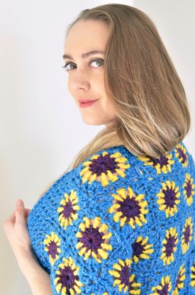 The cardigan body is a rectangle composed of square motifs joined together as you work their last round (guidance provided). The rectangle is folded lengthwise and joined together at sides leaving spaces for armholes. Then edging is worked along the main opening circumference and around the armholes. You can alter the size by adding or deducting the number of squares in the rectangle (horizontally or vertically or both). To check the size that best fits you, experiment with big bath towels folding and pinning them together to achieve the same shape.