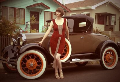 Knit simply in mostly stockinette fit, the design uses dart shaping and negative ease to cling to every curve. The lace sash is knit separately and joined to the dress afterward for a retro look that is to die for.