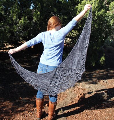 Aunt Julie is a classic crescent shawl with pretty lace center. Top down design, with an easy to memorize lace pattern. Lace is fully charted.