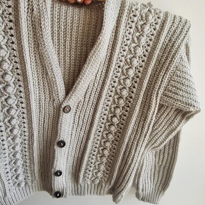 Puedes adaptar el largo a tu gusto y se trabaja por piezas, en vertical y con mucho aire, por lo que se logra un tejido liviano, pero muy abrigador y en el que se avanza muy rápido!