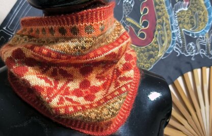 This design features several Fair Isle motifs worked in four colorways to evoke a vision of autumn in the countryside. The pattern is worked in the round and should be suitable for a confident beginner.