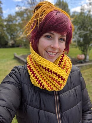 The Autumn Cowl works up quickly with extra bulky yarn...and extra bulky means....extra warm and comfy! Use fun fall colors, or customize it however you like!