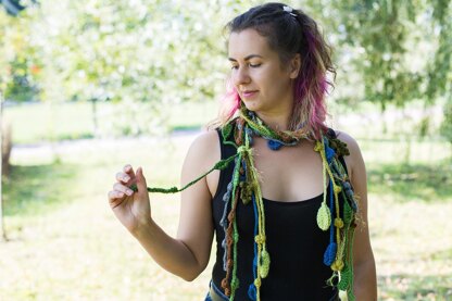 Crochet lariat scarf pattern "Autumn" includes: