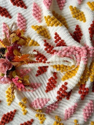 A beautiful autumn blanket where contrasting bobble blocks mimic the falling autumn leaves.
