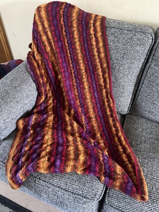 The blanket measures approximately - 45 by 25 inches. What's needed:- 4.5 mm circular knitting needles Tapestry Needle