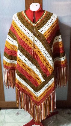 One Size - Teen/Adult 39” (99cm) long without fringe, 46” (117cm) long with fringe Measured shoulder to bottom point. This pattern includes instructions for different lengths, and can easily be adjusted for a smaller/larger size by changing the yarn weight and hook size.