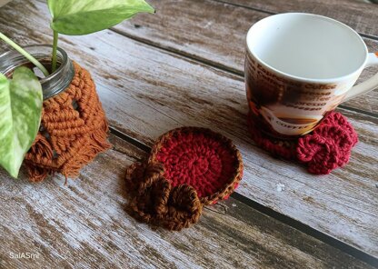 This coaster pattern can be made with leftover yarn of contrasting colours. Prefered yarn cotton or cotton mix.