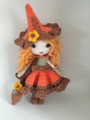 instant digital download after payment. Size: The doll is 8 inches tall. Depending on hook/yarn used. Skill level is Intermediate/ with some easy bits Basic skills of crochet are needed. Autumn is Crochet wrong side outward. Doll is made from feet up to head, minimal sewing. Dress, hat are removable. Detailed Pattern with photos and links.