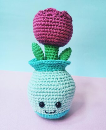 Ava completes my potted plant trio – there’s Sammy the Succulent, Fig the Bonsai (both sold separately) and now Ava the Rose! A cute, quick and almost no-sew pattern. It’s just the leaves to sew!