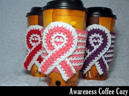 Everyone has a cause they strongly believe in... what's yours? Breast cancer? Let everyone know with this passionately displayed ribbon cozy! They crochet up quickly and barely use any yarn. Make one for everybody you know! Keeps your iced coffee cool and your hot coffee hot! Plus... they are Earth-friendly since they are re-useable!