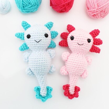 This little axolotl amigurumi measures 5.5 inches from the top to bottom.