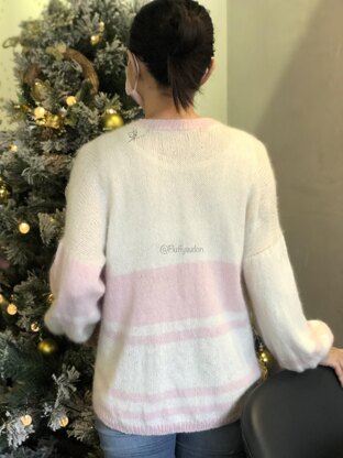 This is my Christmas present I made for myself with two favorite colors. The AyoGG Pullover is knit from the top down. Each shoulder is knit separately then the front and back of the sweater are joined under the armholes and the body is knit in the round. Finally stitches are picked up along the armholes and the neck, and a rib collar is knit. Sizes: S-M-L Bust circumference: 75/80-85/90-95/100cm Length (measured at back): 55-59-63cm Yarn: Etrofil Angora Luks Number of skeins: 6-7-8 Yardage: 900-1500m Needles: Circular needles 40/60/80cm, Double Pointed Needles size 4,5mm and 3,5mm and 5mm crochet hook. Gauge: 24sts x 30 rows = 10 x 10cm in stocking stitch on 4,5mm needles after blocking. Thank you so much! Best wishes for all of us. FluffySudon
