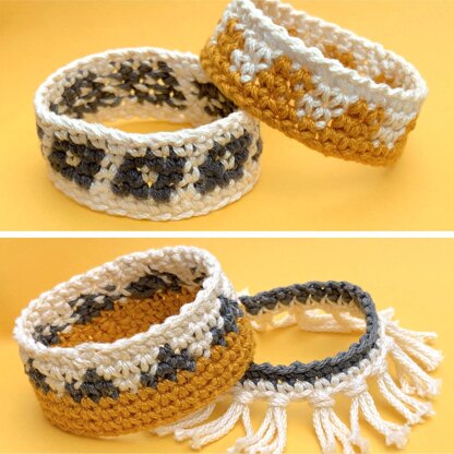 This pattern is a great use for your scrap yarn. The bracelets require less than 25 yards of yarn each.