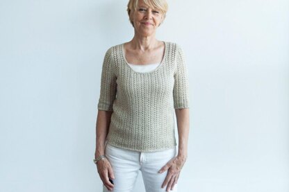 Recalling dreamy summers of my childhood, is B is for Betsy, a sweet lace pullover, perfect for warm weather and transitioning seasons. This is a top down, mostly seamless, lightweight knit. Simple reverse stockinette trims its edges, giving the patterning of its strong vertical embroidery lace center stage. You'll find this lace (an 8 st by 4 row repeat) to be enjoyable, engaging, and easily modifiable during the shaping of its scoop neckline and flattering, elbow-length sleeves. These are worked top down too, then in the round, and set in after blocking. B is for Betsy is a perfectly portable project yielding a fully fashionable result – enjoy!