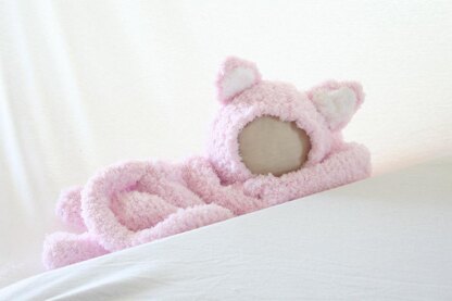 This adorably plush, hooded onsie features enclosed hands and feet. Extra soft and fluffy yarn simulates the kitty cat feel, and an adorable kitten tail finishes the outfit. Four small buttons can be closed anywhere along the front. Make your next photo session extra special with this baby kitty cat onsie costume! Pattern is detailed and easy to follow!