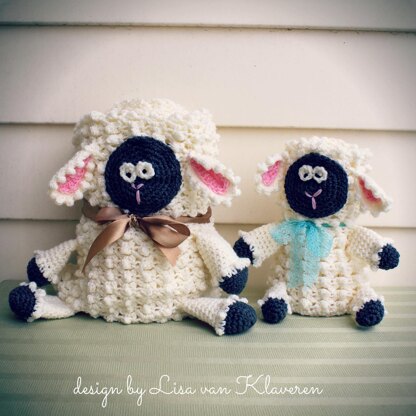 These adorable, fleecy crocheted blankets roll up to create the "Wee Baby Lamb Lovey" or the larger "Mommy Loves Ewe Baby Blanket"!
