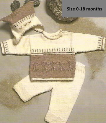 Apart from basic knitting stitches the pattern includes seed stitch, reverse single crochet (these are either illustrated or explained) and charts to work the pattern on the jumper and hat from