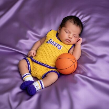 What an adorable little baby basketball outfit. I did this one inspired by the LA Lakers. Cute, fun easy and does not take much yarn. What a perfect little gift to make or to add in your shop at the market to sell. The pattern is written in US Terminology.