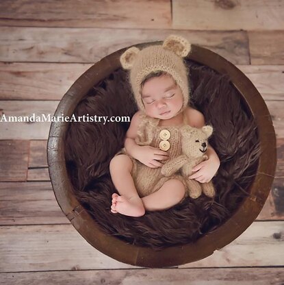 This is for a SET of Knitting Patterns included: *Teddy Bear Bonnet *Teddy Bear Toy Stuffie (Plus FREE Toy Bunny Stuffie pattern) *Baby Romper Dungaree