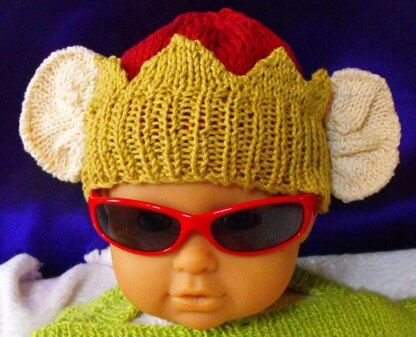 Here is the latest knitting pattern in my Baby Big Ears range. These knitting patterns have been especially designed to hide your baby's huge unsightly sticking out ears. No longer will people be thinking "nice baby , shame about the ears". This pattern has been so successful in England that Her Majesty the Queen hade one made for her eldest son and he states "its a miracle, just as if one had ones own ears cut orffff" So by royal appointment let me introduce you to the Baby Big Ears Prince Charles Crown Beanie knitting pattern. I chose Jaeger Aqua Cotton so it is ideal for summer wear. The pattern covers 3 sizes S, M & L so can be made for any baby with a head circumference between 14 - 20 inches. This pattern is available to buy on Etsy, Ebay or from my most regal website www.madmonkeyknits.com. Thanks for looking.
