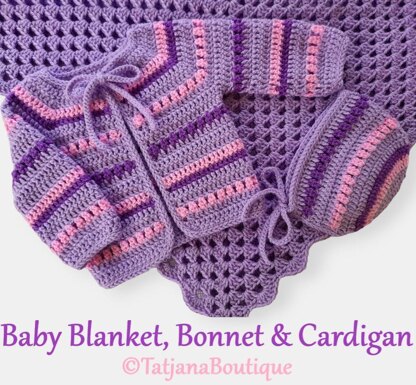 Crochet PATTERN baby blanket, cardigan and bonnet set. ♥♥♥ Blanket pattern for 2 sizes: 27" x 27" (70cm x 70cm) and 31"x 31" (80cm x 80cm) - an ideal sizes for prams, pushchairs, car seats and moses baskets. Bonnet & Cardigan size in this pattern: 3 - 6 MONTHS. The pattern is written in US crochet terms but with a conversion at the beginning of the pattern to UK / Australian terms. Its just that some of the names of the stitches are different. Materials & tools you will need: ★ Acrylic or other yarn 300 - 350 gr approx. - DK, Double Knitting in UK, Light Worsted in the USA, 8ply in Australia. ★ Crochet hook sizes 4.5 mm and 6 mm. ★ Yarn needle to weave in ends (optional).