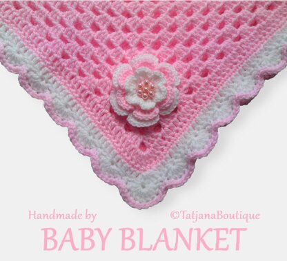 Crochet Pattern baby blanket decorated with crochet flower and pearl beads. ♥♥♥ The pattern is written in US crochet terms but with a conversion at the beginning of the pattern to UK / Australian terms. Its just that some of the names of the stitches are different. This blanket is very cute and can be made in any colours. The blanket measures approx. 25" x 25" (65cm x 65cm) - an ideal size for prams, pushchairs, car seats and moses baskets. Materials & tools you will need: ★ Acrylic or other yarn approx. 150gr - 200gr ( 5.3 oz - 7 oz) - DK, Double Knitting in UK, Light Worsted in the USA, 8ply in Australia. ★ Crochet hook sizes recommended J 6mm and G 4mm. ★ 7 pearl beads (optional). ★ Yarn needle to weave in ends.