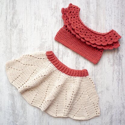 A cute baby girl needs a cute crochet baby set! And if you enjoy crocheting baby clothes like I do, you will have the fun of your life crocheting this design 😍 The baby bloom crochet set is an easy pattern and has straight forward instructions, it is a set of a skirt and a crop top that are easy to adjust by length.