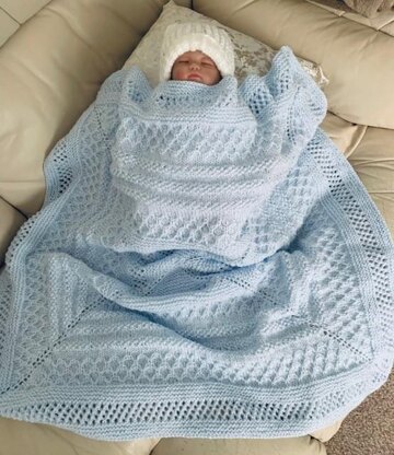 *BABY BLUE EYES* pdf only.. An easy knitting pattern with no difficult stitches. Everything is written clearly with photos as an added guidance should it be needed. You will be knitting 4 identical triangles from the centre out. The little loops/eyelets at the start of every row will be used to sew the pieces together making it so very easy to match the patterns together. I have added some photos of this blanket knitted in pink, just to show it is suitable for boys and girls. Approx 300gms of baby soft double knit or equivalent yarn on 5mm knitting needles. Finished size is approx 32x32ins/82x82cms. This listing is for the pattern and NOT the finished blanket. Available as pdf ONLY, please, please do not ask for a paper pattern as the polite answer will always be no. All patterns are pdf only