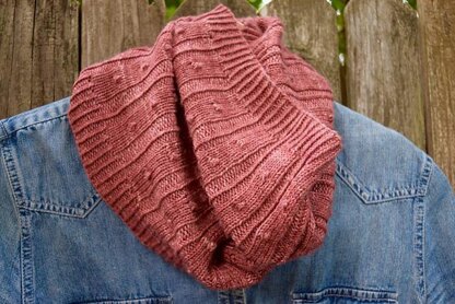Baby Bobble Cowl is a fun ribbed cowl that utilizes twisted stitches and baby bobbles to create a gorgeous and easy texture. Baby Bobble Cowl uses 100 grams of fingering weight yarn to make the perfect tuck-in-your-coat accessory. With only two rows to memorize you won't be able to put this project down!