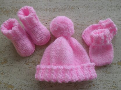 Baby Booties, Beanie Mittens Set