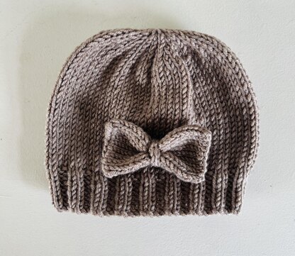A fashionable little bow beanie hat. Beginner friendly. A easy row-by-row knitting pattern. Matching booties pattern available in my shop. This beanie is knitted flat and seamed afterwards