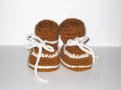 Crocheted brown and white baby booties is a perfect gift for your little baby boys and girls. You can make it from cotton, acrylic yarn or wool. Pattern is written in English, U.S. terminology. This pattern includes step by step instruction and very detailed photo tutorial. Basic skills of crocheting are needed.