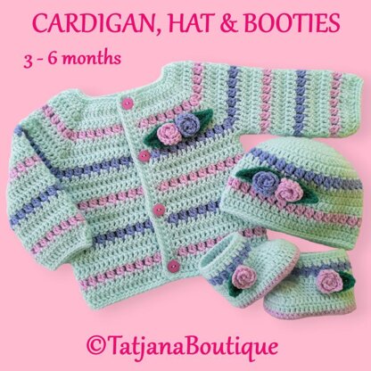 ♥ Crochet Pattern baby cardigan, hat and booties ♥ Size in this pattern 3 - 6 MONTHS.