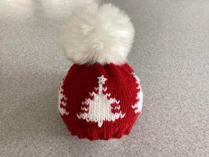 Adorable Christmas Tree Hat. The patterns makes 6 sizes and is made on two needles. It is quick and easy.
