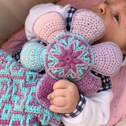 Baby Comforter “Flower” is inset mosaic crochet (without cutting the yarn) and overlay crochet