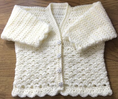 Crochet pattern for a v-neck cardigan. To fit baby from 0-3 months up to a child 5-6 years.